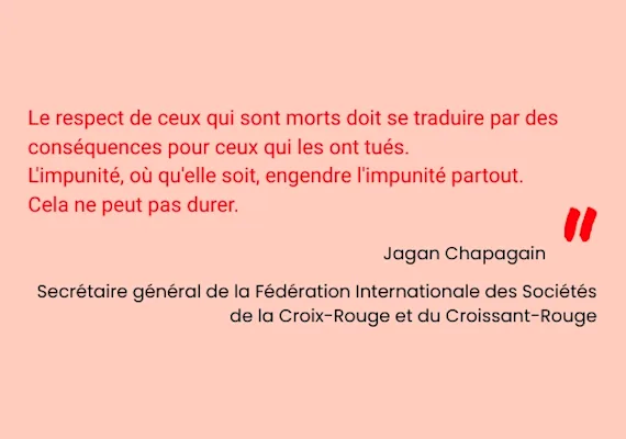 Nos travailleurs humanitaires ont été brutalement tués et jetés dans une fosse commune. Cela ne doit plus jamais se reproduire. Le Secrétaire général de la Fédération internationale des sociétés de la Croix-Rouge et du Croissant-Rouge (FICR), Jagan Chapagain, réagit à l'assassinat de huit personnels médicaux du Croissant-Rouge palestinien dans une tribune publiée par le Guardian le 5 avril 2025.