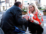 Deux policiers municipaux s'adressent alors au sans-abri "bouche bée". "Tu vois, on t'a pas menti.Le prochain coup, tu nous croiras", répètent-ils, avant de dégainer leur téléphone portable pour immortaliser la bénévole et belle d'un soir.Trois fois par an, la Slovaque la plus francophile âgée de 37 ans fait une "sortie terrain" aux côtés des forces vives de la Croix-Rouge. A la prison des femmes de Strasbourg ou dans une école au Niger. Sans meute de journalistes mais avec pudeur et candeur. Sans hauts talons mais avec la parka fluo aux couleurs de l'association, des bottes d'Iroquois et une chemise de bûcheronne."Cela m'aide à relativiser même si ma vie n'est pas dans les palais. A la Croix-Rouge, je me considère comme une apprentie, j'ai envie de voir comment ça marche, je veux rester crédible", nous confie-t-elle. Dans ce petit marathon de la solidarité, celle qui est apparue dans "Astérix aux Jeux olympiques" s'invite d'abord dans un centre d'accueil des demandeurs d'asile. Elle écoute les malheurs des uns et des autres qui, pour la plupart, n'ont jamais vu la "miss" que sur papier glacé. Elle s'inquiète du sort de Daniel, un Roumain de 25 ans sourd et muet, abandonné ici par sa mère et un beau-père maltraitant. Elle câline Jora, un nourrisson arménien "trop mignon" âgé de 10 jours. A l'heure du coucher du soleil, la voilà en route pour une maraude.