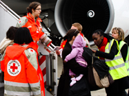 Hier, dans le grand hall Aires, à l’écart des autres terminaux et de ses voyageurs, il y avait beaucoup d’émotion. L’avion affrété par le ministère des Affaires étrangères se fait attendre. Aux environs de 11h, à l’annonce de l’atterrissage, tous les partenaires présents se mettent en place. La cinquantaine de bénévoles de la Croix-Rouge française s’affaire : après avoir monté les dix cabinets médicaux provisoires pour permettre aux médecins de recevoir chaque enfant en consultation, un coin jeux et un stand collation, ils se préparent maintenant à accompagner les parents et leurs enfants pour les dernières démarches à effectuer.