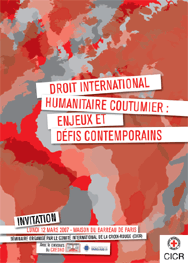 Président : Philip Spoerri, directeur du droit international, CICRInvité d'honneur : Maurice Kamto, ministre de la Justice du Cameroun, avec la participation du CRDHO, de l'université de Panthéon-Assas Paris II, de la Croix-Rouge française et le soutien du Barreau de Paris.Jean-François Mattei, président de la Croix-Rouge française, prendra la parole lors de la clôture de ce séminaire.