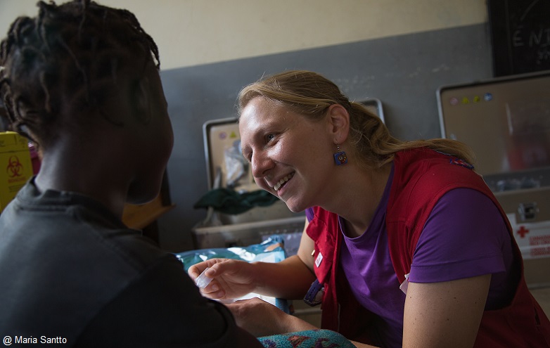 Aujourd’hui, elle rêve de devenir médecin pour aider les gens qui ont besoin de soins. Marion Lahuec, logisticienne médicale et infirmière à la Croix-Rouge française, lui applique une pommade antibiotique, lui donne des consignes sur son application et sur l’importance de se laver les mains.