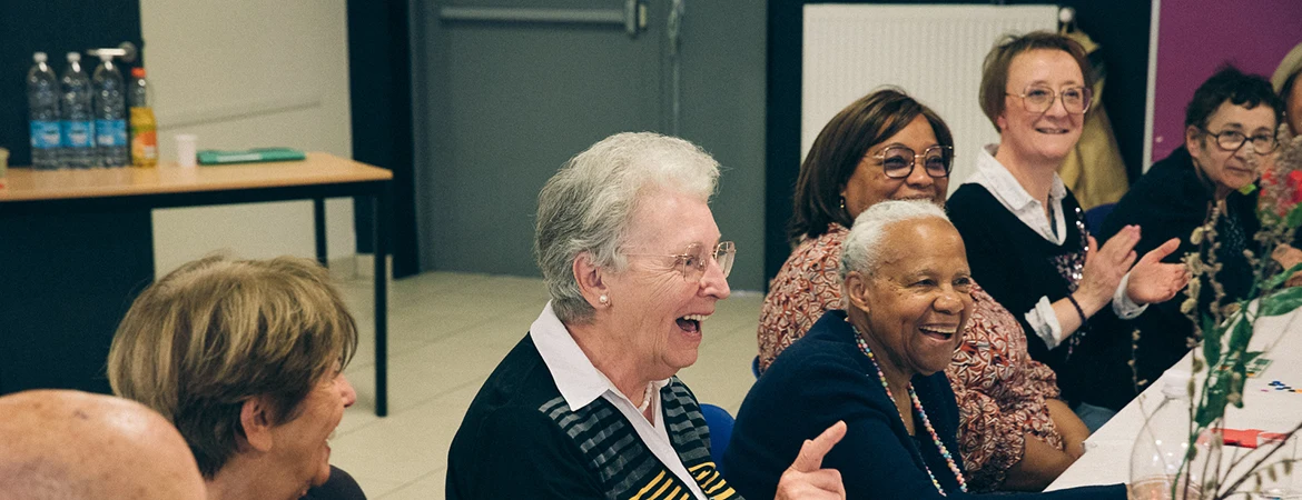 Les assiettes sont servies. En bout de table, Odette et Maryse, deux bénévoles, se sont assises à côté de Denise, qui vient ici depuis trois semaines. Mais déjà, raconte sa fille Laurence, elle attend le mercredi suivant avec impatience. « Elle a bientôt 99 ans. Le but du jeu c'est le maintien à domicile. Donc je suis toujours à la recherche d'activités pour la stimuler, pour qu'elle continue de voir du monde. Sinon, elle s'ennuie ». Odette a décidé d’aller lui rendre visite à domicile. « Je vais la prendre un petit peu en charge. On n’habite pas loin. Il y a des moments dans la semaine où je n’ai rien à faire » commente-t-elle. Maryse, sa comparse, explique : « on s’attache aux personnes… Souvent, on reste auprès d’elles et des familles jusqu’au bout. Que voulez-vous, ça nous apporte de la joie. On se sent utile. Ça donne un sens à notre vie, automatiquement ». L’autre aspect de leur engagement, c’est l’amitié. « On forme une bonne équipe. On s’accorde bien », raconte Maryse.