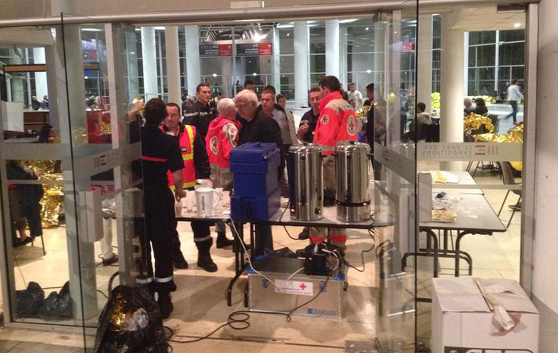 Dans l’Hérault, environ 4 000 personnes se sont retrouvées bloquées dans les trains ou leur voiture. Ces naufragés ont été pris en charge dans la nuit de lundi à mardi dans des centres d’hébergement d’urgence. La préfecture de l'Hérault a indiqué que 1 600 lits avaient été déployés, notamment par la Croix-Rouge française et par l'armée. Des opérations de prompt secours et de transport de personnes ont également été assurées. Il faut souligner ici la très large mobilisation de la délégation départementale de l’Hérault.