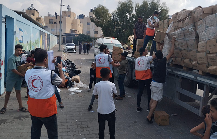 Le Croissant-Rouge palestinien, en coordination avec le Croissant-Rouge égyptien, a distribué 16 301 colis alimentaires aux familles déplacées dans Gaza, au cours des dernières 24 heures. Il y a un besoin urgent de carburant et de fournitures médicales pour assurer le fonctionnement des centres de santé avant qu'ils ne s'effondrent.