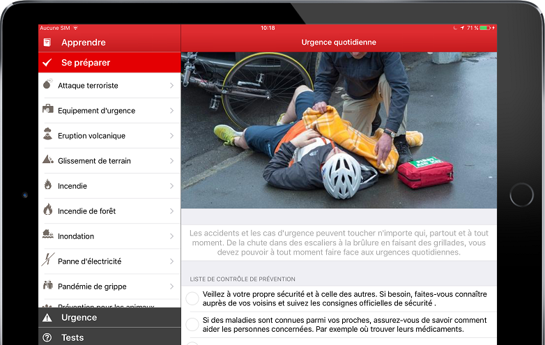 La Croix-Rouge française lance la nouvelle version de son « Appli qui sauve », application mobile gratuite qui permet de s’initier ou de rafraîchir ses connaissances sur les gestes de premiers secours, de comprendre comment se préparer aux catastrophes et de se tester de manière ludique.