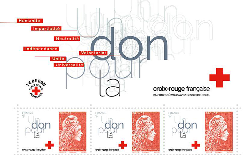 Le 29 octobre, La Poste émet un bloc de 3 timbres autour des 7 principes et valeurs humanitaires qui guident depuis toujours le Mouvement international de la Croix-Rouge et du Croissant-Rouge. La Poste reversera deux euros de don à la Croix-Rouge française, pour chaque bloc vendu.