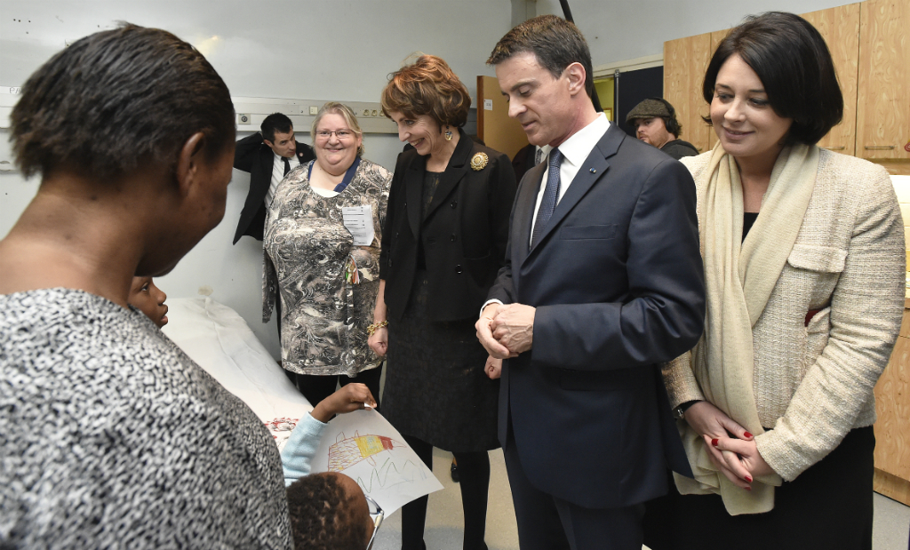 Manuel Valls visite le centre d’hébergement hivernal Croix-Rouge de l’hôpital Necker