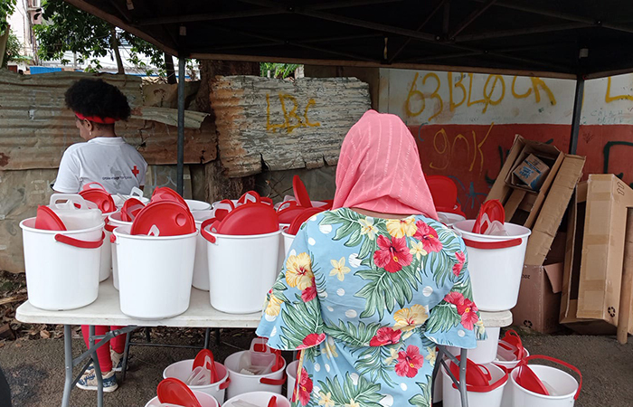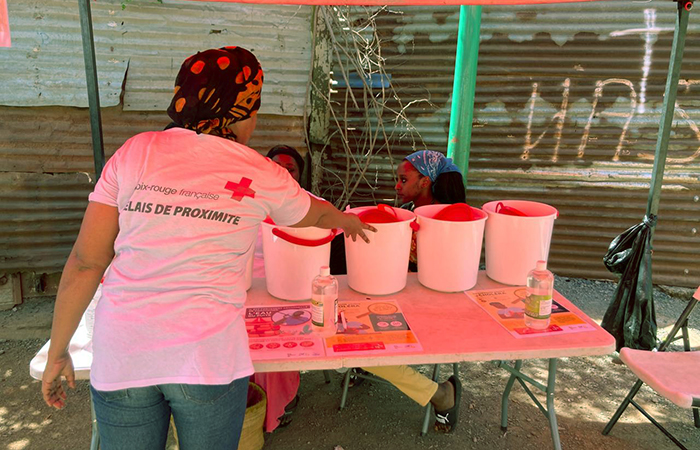 Les volontaires accompagnent leur message de prévention de distributions de kits de lavage des mains composés d’un jerricane, d’un seau, de savons et de pastilles de chlore qui permettent de purifier l'eau. Récemment, 5 000 nouveaux kits ont été réquisitionnés, avec l’aide de notre Plateforme d'intervention régionale océan Indien (PIROI). Et parce que le lavage des mains est le premier geste à adopter pour lutter contre la propagation du choléra, des dispositifs de lavage des mains ont été fabriqués et mis à disposition de la population.
