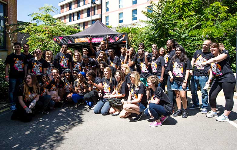 C’est la même musique que l’on retrouve pendant le concert Orange RockCorps, organisé au Trianon. Les t-shirts et les pantalons maculés de peinture ont disparu mais l’ambiance est toujours là. A la différence d’un concert conventionnel, les groupes évoquent leurs expériences et se remémorent les bons souvenirs en patientant dans la file d’attente. Au son des tubes d’Indila, d’Azealia Banks ou de Wiz Khalifa, ces bénévoles d’un jour partagent un moment de détente, en attendant de repousser peut-être la porte de la Croix-Rouge française pour donner encore de leur temps et de leur joie de vivre.