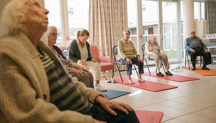 Sur une chaise ou en fauteuil roulant, le yoga s’invite à l’Ehpad