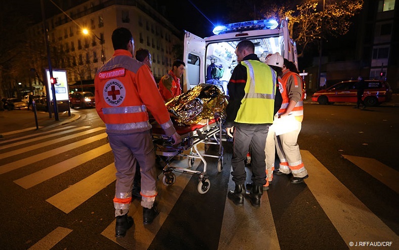 Le 13 novembre 2015, la Croix-Rouge française a déclenché son dispositif ARAMIS (actions régionales sur accidents multi-sites et interventions spécifiques).