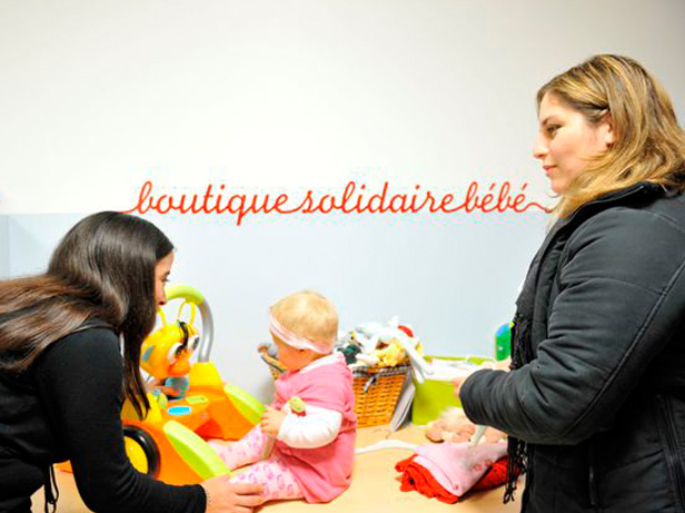une boutique solidaire bébé proposant des vêtements, des articles de puériculture et des jouets. Elle permet également la distribution bimensuelle de produits adaptés à l’âge du bébé (couches, produits de nutrition infantile, produits d’hygiène…). Une participation de 5 à 20 % du prix affiché est demandée aux mamans pour les produits alimentaires, elle revêt un caractère pédagogique et de respect de la dignité de la personne,