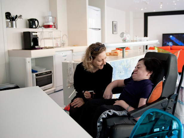 Pour le repas du soir, Mélanie s’est décidée, ce sera pizza. Quelque chose de simple, « une Reine, jambon, fromage, champignons » souffle “la petite princesse de l’Oasis”, comme l’a surnommée Marianne, l’une des infirmières des lieux. Si les bras de l’adolescente reposent, immobiles, sur les accoudoirs de son fauteuil roulant, de sa voix, elle mène la manœuvre culinaire. Sur ses instructions, Julie, l’une des gouvernantes de la maison, dispose la pâte, verse le coulis de tomates… Mélanie veut-elle essayer de l’étaler ? Pourquoi pas ! Sa main délicatement enserrée par celle de Julie, elle remue, consciencieuse, avant de grimacer. Trop douloureux. Sa maladie, le syndrome d’Exner, une maladie orpheline incurable, ne lui permet que peu de mouvements. Moue dépitée, puis franc sourire, Mélanie reprend sa direction vocale des opérations, et laisse le rôle de marmiton à Andy, qui du haut de ses huit ans, est impatient de mettre la main à la pâte. Arrivé la veille au soir à l’Oasis avec ses parents et son grand frère, le petit garçon, atteint d’une tumeur du tronc cérébral, a vite apprivoisé les lieux. Quant à s’improviser pizzaiolo, ça le connaît : « j’ai même participé à un concours de la meilleure pizza ! », fanfaronne-t-il. Quelques instants plus tard, le plat des enfants est enfourné, et en attendant la dégustation, c’est session dessins animés devant la gigantesque télévision du salon. Julie installe Mélanie, un peu fatiguée, à “sa” place, non loin du téléphone, tandis qu’Andy s’affale sur le canapé. « C’est tranquille ici, reposant, ça change de la maison et des bébés qui pleurent à l’hôpital », commente-t-il.