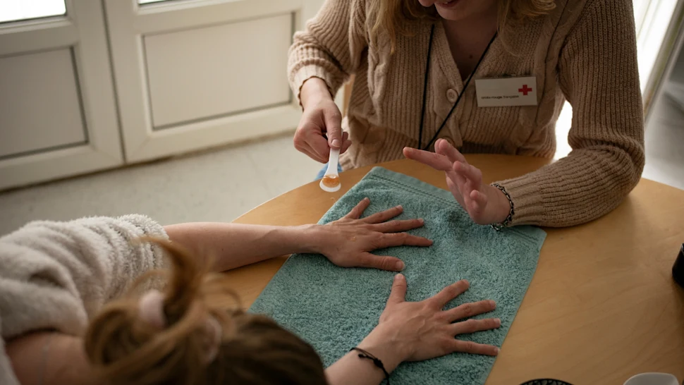 La notion de “limite”, Pascaline en a bien conscience et veille à toujours respecter le choix de celles dont elle prend soin. “La spécificité avec les femmes victimes de violences, pour moi, c'est d'établir un lien de confiance et de toujours tout expliquer : ce que je vais leur faire comme soin quand elles vont être allongées sur la table de massage, si la crème va être froide, chaude, quelle fragrance je vais utiliser”, détaille l’animatrice.