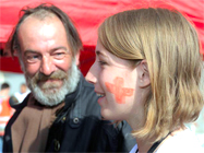 Gégé vit dans la rue depuis 32 ans. Il arrive timidement, tournant autour de la tente Croix-Rouge. Amélie, jeune bénévole, l’a aperçu. Une croix rouge dessinée sur la joue, elle va à sa rencontre. Il accepte volontiers une collation et prend petit à petit ses aises. « Qui a gagné hier soir, Bordeaux ou Lorient ? », demande-t-il. Heureusement, les garçons viennent à la rescousse d’Amélie. Le contact est établi d’emblée. Gégé passera la matinée avec l’équipe. Il alpague lui-même certains passants pour qu’ils se joignent au joyeux rassemblement. Assis sur un banc à coté de lui, un retraité fait une démonstration de cocottes, chemises et autres origami qu’il créée à partir de tickets de métro.