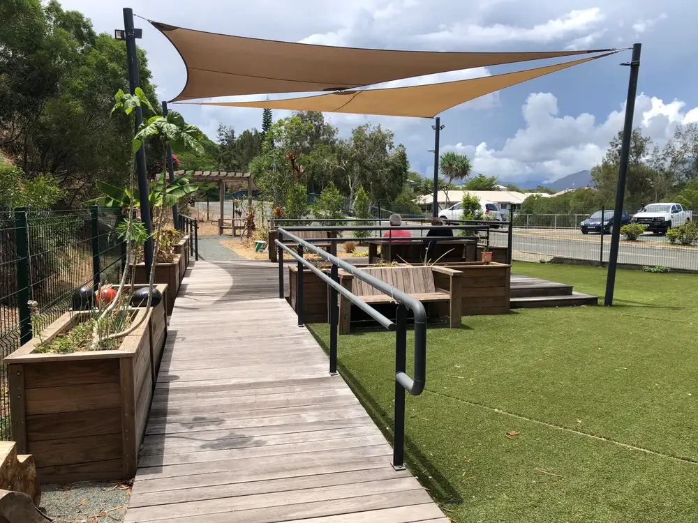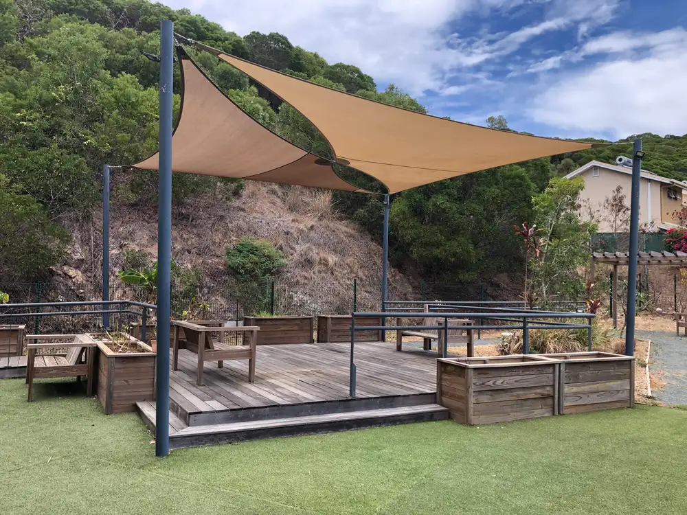 Le centre bénéficie par ailleurs d’une terrasse de 30m² et d’un espace jardin de 150m², équipé d’un faré et de bancs sous toiles tendues, ainsi que de jardinières hautes permettant de proposer des activités de jardinage.