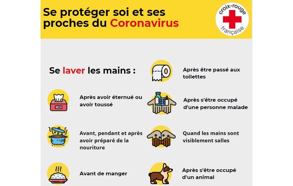 Fidèle à son rôle d’acteur de la prévention des risques sanitaires, la Croix-Rouge française rappelle les gestes simples à adopter pour réduire les risques d’infection par le nouveau coronavirus.