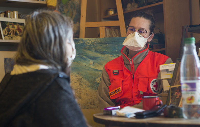 Camille Moreno, bénévole à la Croix-Rouge de l’Hérault et référente Croix-Rouge chez vous :« Durant le premier confinement, nous avons effectué de nombreuses livraisons solidaires chez des particuliers du territoire, dans le cadre du dispositif Croix-Rouge chez vous. A cette occasion, nous avons mesuré à quel point certains d’entre eux étaient seuls, isolés, désespérés, en manque cruel de lien avec l’extérieur. En déposant les colis à la porte, alors que nous devions rester à distance, il nous arrivait de discuter avec la personne. Nous étions parfois son seul contact humain de la semaine. Il ne s’agissait donc pas uniquement d’un soutien matériel.Afin de lutter contre l’isolement social de ces personnes dans la durée, alors que je terminais mon service civique à la Croix-Rouge française, je me suis portée volontaire pour maintenir et faire évoluer le dispositif dans le département de l’Hérault. Avec d’autres bénévoles de la délégation territoriale et le soutien de stagiaires étudiantes en psychologie, nous effectuons des appels de convivialité et, pour ceux qui le souhaitent, des visites de courtoisie. Je m’implique à 100 % dans cette action car j’ai vraiment envie de faire quelque chose de concret pour maintenir le lien et aider ces publics à sortir de leur solitude.L’expérimentation a démarré au dernier trimestre 2020 et les premiers retours confirment qu’il y a un réel besoin. A partir des listes des livraisons solidaires effectuées au printemps 2020, nous appelons chaque personne pour prendre des nouvelles, voir comment sa situation a évolué, demander si elle souhaite être appelée fréquemment ou si une visite à domicile pourrait lui faire du bien, améliorer son moral. Nous établissons à ce moment-là une fiche profil, dans laquelle nous inscrivons les informations importantes. Bien sûr, celles-ci restent confidentielles. Au téléphone, avec un maximum de tact et de gentillesse, nous posons différentes questions : avez-vous des contacts avec votre famille, vos voisins, des amis ? Vivez-vous seule ? Comment vous sentez-vous, moralement, physiquement ? Avez-vous besoin de quelque chose en particulier ? Puis, en fonction des réponses et de la tonalité de notre échange, nous convenons éventuellement d’un prochain rendez-vous : un nouvel appel ou une petite visite, dans le strict respect des gestes barrières évidemment.Quelles que soient les modalités, une grande partie des personnes appelées a envie de rester en contact avec nous. »