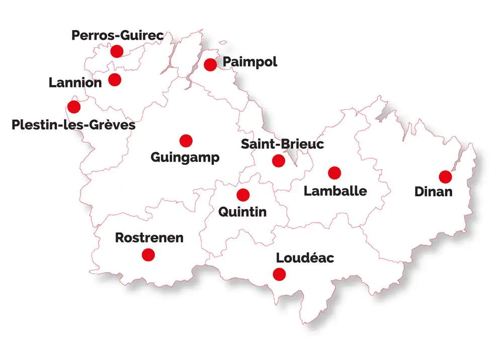 Plestin-les-Grèves │ Perros-Guirec │ Lannion │ Guingamp │ Rostrenen │ Paimpol │ Saint-Brieuc │ Quintin │ Loudéac │ Lamballe │ Dinan