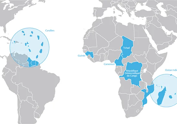 Les outils développés par le RIPOSTE ont été déployés et expérimentés dans quatre pays d'Afrique subsaharienne (Guinée, Cameroun, et République Démocratique du Congo, Tchad), ainsi que dans deux plateformes régionales d'intervention de la Croix-Rouge française situées dans l'Océan Indien et les Caraïbes (PIROI et PIRAC).