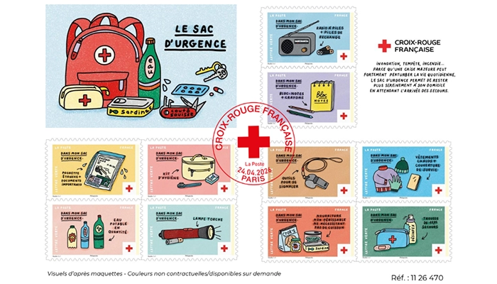 Le 27 avril 2026, La Poste émet un carnet de 10 timbres-poste dédié au sac d’urgence.