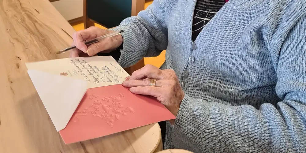 Ce matin, à la Roseraie, la magie de Noël a pris la plume. Lors d’un atelier d’écriture, nos résidents ont rédigé des cartes remplies de tendresse pour leurs proches. Un moment chaleureux, empreint d’émotion et de partage, pour faire vivre l’esprit des fêtes jusque dans les cœurs.