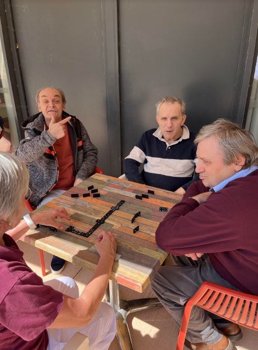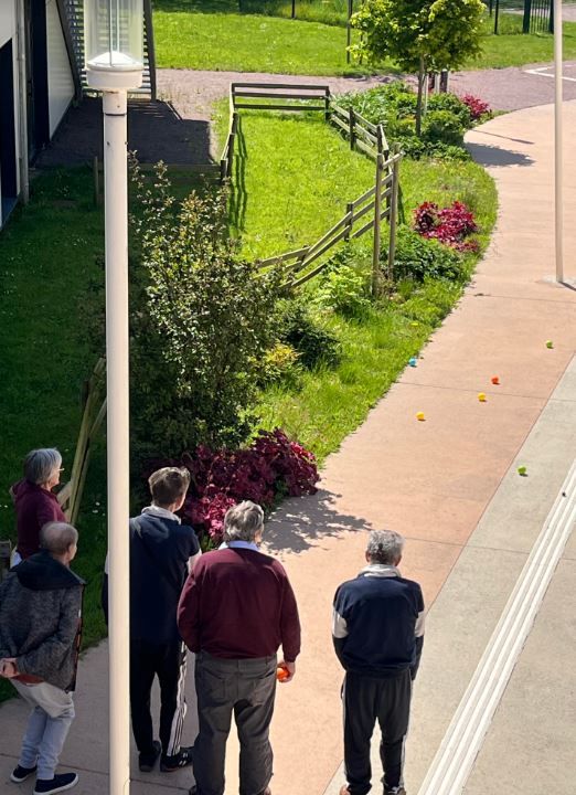 Il fait beau ce jeudi après-midi, les résidents en profitent pour se livrer à quelques activités en terrasse.