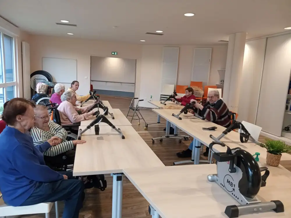 Chaque lundi matin une séance d'activité physique adaptée est mise en place par Esther, Ergothérapeute de la résidence. Vélo d'appartement et pédalier sont au programme !!