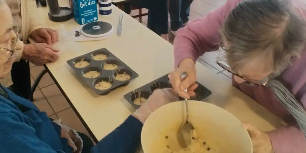 Nos résidents ont mis la main à la pâte pour préparer de délicieux muffins aux pépites de chocolat. Un moment de création et de gourmandise à la chaleur du four. Un grand merci à tous pour leur enthousiasme et leur énergie !