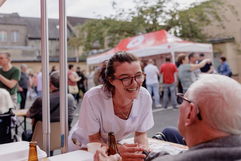 Nous avons cassé les codes et avons offert à nos résidents un moment unique. Avec l'aide du Bistrot Bertha, nos équipes, bénévoles et voisins, nous avons organisé une soirée festive qui a réuni plus de 200 personnes. Musique, frites, danses et rires ont animé nos locaux et fait battre le cœur de notre ville. Un événement qui a renforcé les liens entre résidents, familles et habitants, et rappelé à tous que la joie de vivre n’a pas d’âge !