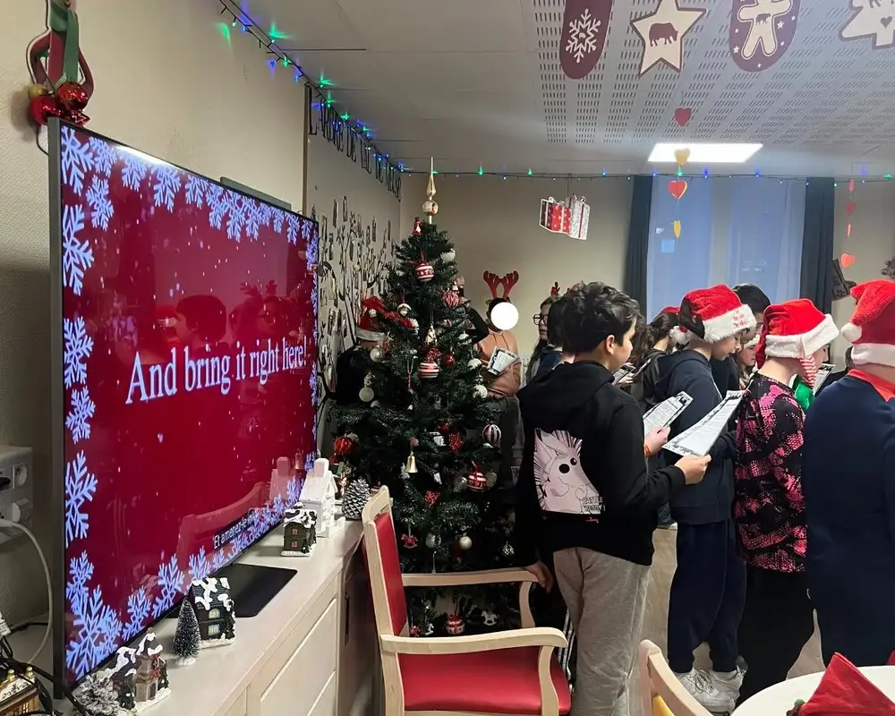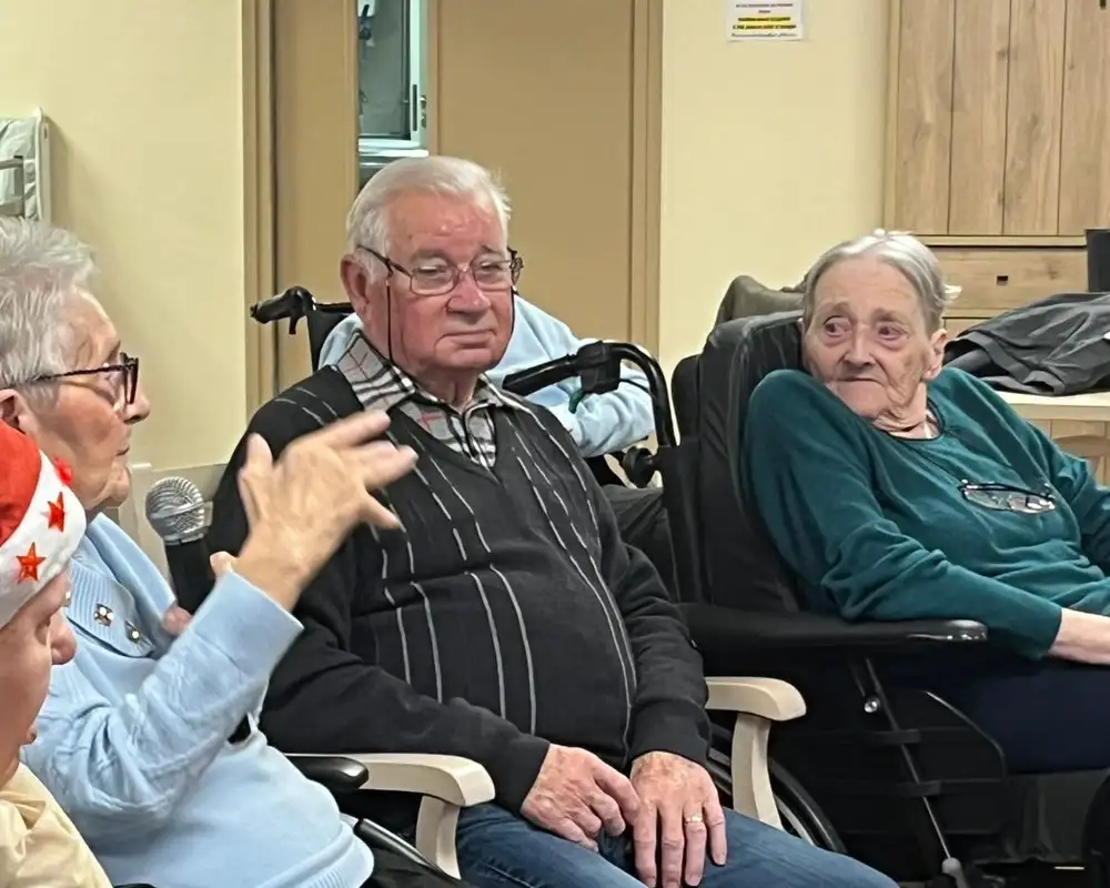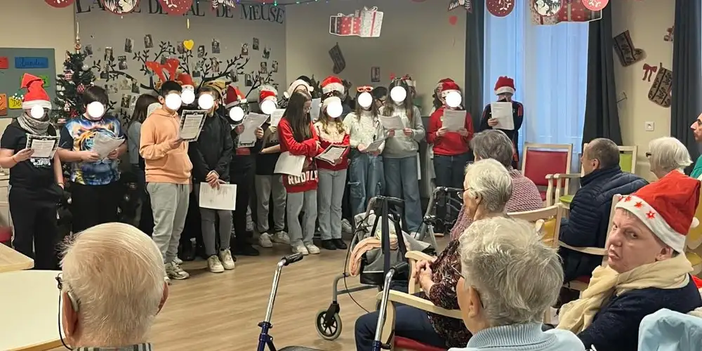 Les collégiens de la Cité scolaire Vauban, accompagnés de leur professeure d’anglais, sont venus rencontrer nos résidents pour un moment unique. Au programme : chants de Noël en anglais et échanges riches sur les traditions de cette fête. Les élèves ont posé des questions sur les souvenirs de Noël, les cadeaux et les repas, créant de beaux moments de complicité. Avant de partir, ils ont déposé des cartes de vœux aux résidents, prolongeant l’esprit des fêtes.