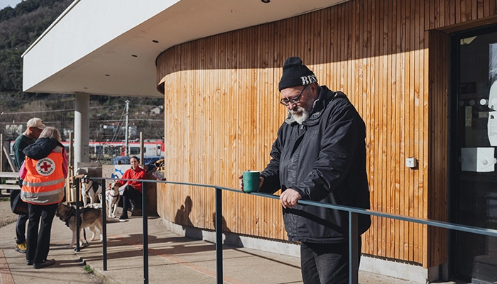 Au lendemain de la maraude, l’obscurité de la nuit à peine déchirée, Greg est déjà là, posté comme promis à l’entrée de l’accueil de jour. Un gobelet de café à la main, un œil sur ses chiens, une Husky au regard sage et un molosse tenu solidement en laisse. De sa vie aventureuse, le quarantenaire ne dit rien, ou presque. Un fils de 22 ans en Belgique, d’où il est originaire, la route taillée depuis un moment. Jusqu’en Ariège où il a atterri un peu par hasard. Greg "ne demande rien. Mais il est là tous les matins depuis près de cinq ans", souffle Stéphanie, agent d’accueil, depuis le comptoir où elle sert café sur café.