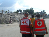 Les volontaires haïtiens marqués de la Croix-Rouge, qui sont des travailleurs journaliers, déballent les articles, les groupent en veillant à bien respecter le nombre distribué par personne, les donnent aux bénéficiaires pendant que d’autres aident à porter le tout jusqu’à la sortie.