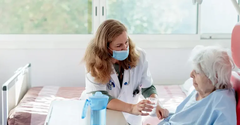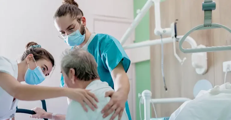 L'équipe de soins infirmiers (Infirmiers, aides-soignants, agents de service hospitalier, brancardiers), bénéficie de formations spécifiques à la prise en charge des patients âgés poly pathologiques et dépendants, permettant de garantir des soins de qualité à la population accueillie et d'un travail en équipe pluridisciplinaire.