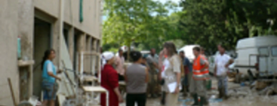 Cent vingt bénévoles, venus de toute la région (Alpes-Maritimes, Bouches-du-Rhône, Hautes-Alpes, Gard et Vaucluse) et de Monaco, participent aux opérations de nettoyage des habitations et de distribution d’eau potable aux habitants. Les secours sont organisés sur six zones : Draguignan, Roquebrune, Le Muy, Les Arcs Taradeau et Trans-en-Provence. 29 étudiants de l’Institut régional de formation sanitaire et sociale de la Croix-Rouge se sont joints aux équipes de secours, répondant ainsi à l'appel de l'association. Ils prêtent main forte aux opérations de déblaiement des maisons, principalement. Les bénévoles se partagent les tâches : distribution d’eau potable, de nourriture, de couvertures et de vêtements. Une "vestiboutique itinérante" a d’ailleurs été mise en place pour aller au devant des personnes isolées, encore très choquées, et qui n’osent pas venir demander de l’aide directement.
