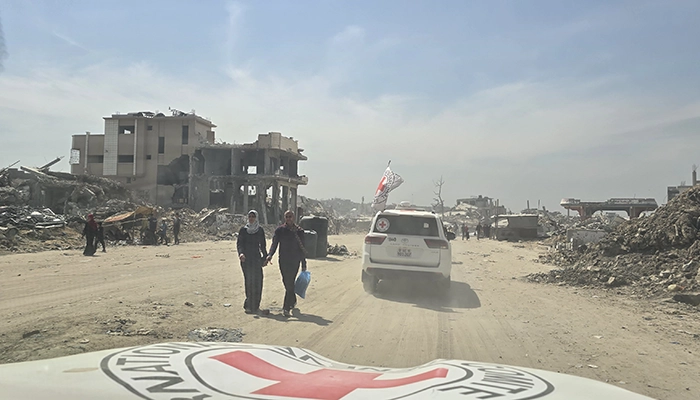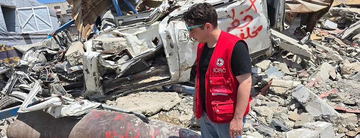 Sur place, il est chargé d’assurer la coordination entre le CICR et les acteurs Croix-Rouge et Croissant-Rouge. Cette mission consiste à soutenir les équipes et les volontaires du Croissant-Rouge palestinien (PRCS) dans les opérations de secours aux personnes - les prendre en charge, les transférer vers l’hôpital ou les structures médicales. En résumé, trouver à chaque instant des ressources et des moyens pour parer aux multiples urgences, dans un climat d’insécurité permanent et de contraintes de déplacement, nombre de mouvements nécessitant une autorisation.