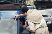 C’était en 2003, lorsque j’étais à Vienne dans l’Isère. Une bande de bikers en Harley-Davidson qui se rendait à un rassemblement s’arrête au feu où j’étais posté. Un peu impressionné, je m’avance et demande une pièce au premier, visiblement le chef de la bande. Il glisse une pièce dans mon tronc et ordonne à son « équipe » d’en faire autant. Sans descendre de leurs engins, ils sont passés un par un devant moi, en file indienne, pour s’exécuter sagement.
