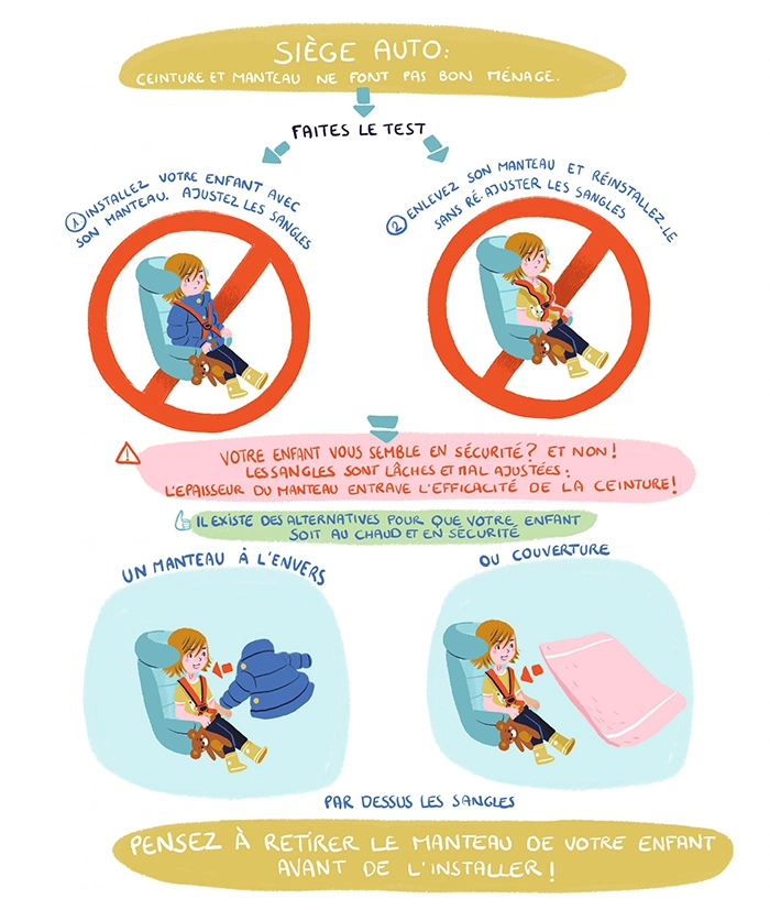 Siège auto : Ceinture et manteau ne font pas bon ménage.