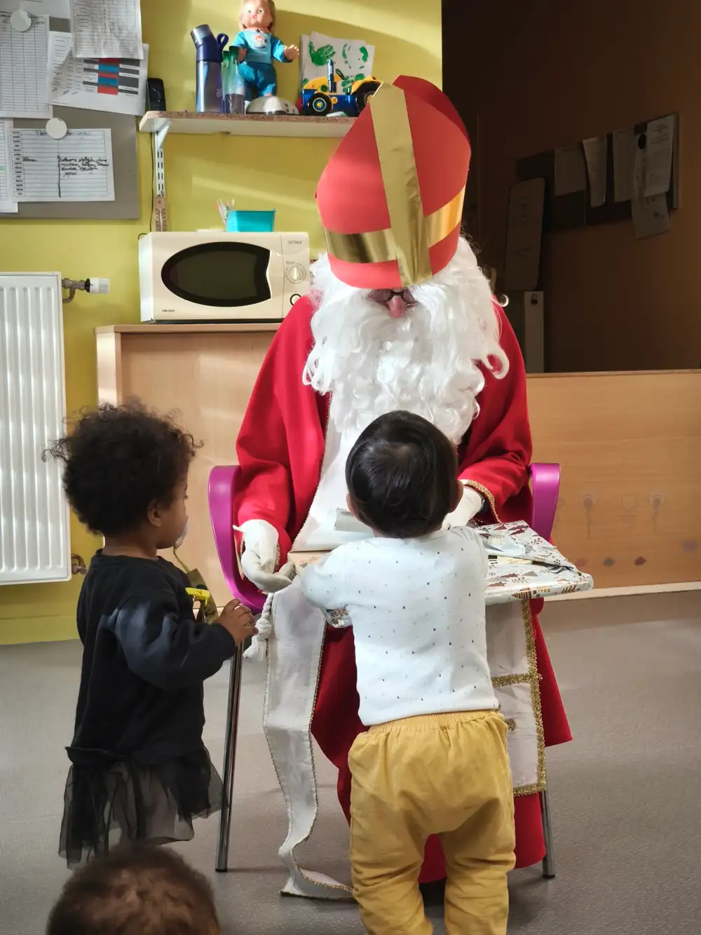 Saint Nicolas est venu rendre visite à l'ensemble des enfants de la crèche. Sourire, générosité et partage étaient au rendez vous.