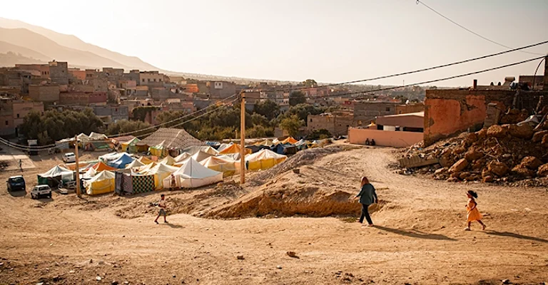 Le 8 septembre 2023, un séisme de magnitude 6,8 a touché le Maroc au Sud-Ouest de Marrakech, suivi de centaines de répliques. Près de 380 00 personnes ont été touchées. Ce tremblement de terre est le plus meurtrier au Maroc depuis 2004. 4 provinces ont été particulièrement touchées : Marrakech-Safi, Al Haouz, Chichaoua, et Taroudant. Certaines zones ont été complètement détruites, et, avec l’approche de l’hiver, les besoins étaient conséquents. La gouvernement marocain s’est rapidement mobilisé en déployant l’armée et en faisant appel à des fondations comme la fondation Mohammed V ou la fondation YUSRA.