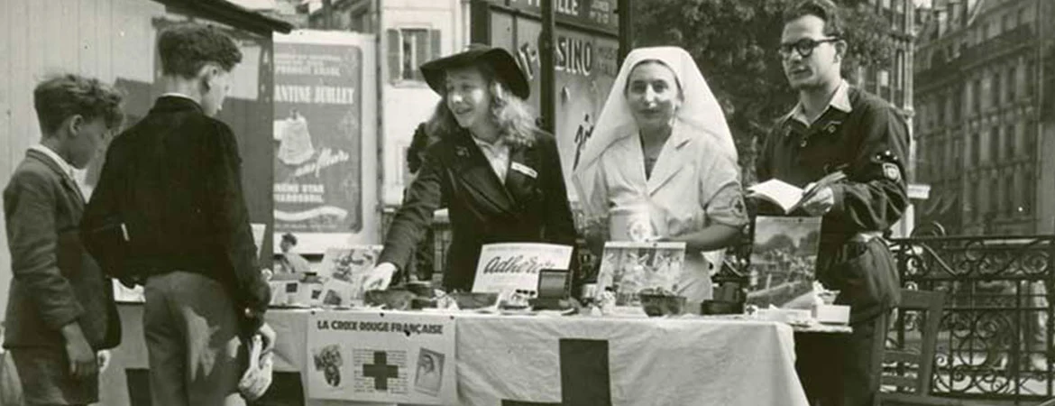 C’est véritablement après 1940 que la Croix-Rouge devient un microcosme de la société française. La guerre a suscité un grand élan de solidarité national. Chacun donne de son temps à sa manière, de la confection de colis et de lainages pour les prisonniers de guerre au secours des victimes des bombardements, en passant par l’accueil des rapatriés des camps. Tous choisissent de prendre des risques, comme ces convoyeuses qui intègrent des enfants juifs aux groupes d’enfants éloignés en train vers les campagnes, les arrachant ainsi à la déportation. Tout comme ces secouristes qui perdent la vie, durant les combats de la libération, malgré le brassard qui les distingue et aurait dû les protéger...