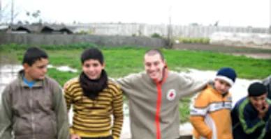 C’est dans le cadre du programme d’aide psychosocial que mène la Croix-Rouge française avec la Croix-Rouge danoise, islandaise, italienne et palestinienne, qu’Olivier et Youssef ont atterri samedi soir à l’aéroport de Tel Aviv. Au programme, une semaine de rencontres et de partage avec les jeunes adolescents palestiniens et leur familles en Cisjordanie. Mais également des rencontres avec les équipes du Comité international de la Croix-Rouge (CICR) et du Magen David Adom à Jérusalem. Aventure humaine avant tout, exceptionnellement formatrice pour ces deux jeunes adultes français, sur une terre de conflit, mais surtout sur une terre de défense de l’idéal humanitaire d’Henry Dunant. Mais ils ne sont pas seuls car cette mission est effectuée dans le cadre du consortium regroupant autour du Croissant-Rouge palestinien (PRCS), la Croix-Rouge française et les sociétés danoise, islandaise et italienne. Et c’est donc accompagnés de deux jeunes Danois, Italiens et Islandais qu’Olivier et Youssef se lancent dans l’aventure. Après une arrivée ralentie par de très longues formalités douanières, et une première prise de contact avec leurs confrères européens, la mission a commencé tôt dimanche matin pour les deux jeunes français. Dans Jérusalem, les bureaux du CICR sont froids et humides car le climat est inhabituellement rigoureux et pluvieux pour la saison. On prévoit même de la neige ! Mais le briefing sécurité commence, sous la direction de la responsable du CICR qui transmet les consignes à la jeune équipe attentive. Puis vient l’heure d’une présentation approfondie de la mission du CICR en Israël et dans les territoires palestiniens. Rappel du droit international humanitaire (DIH), de l’histoire de la région et des derniers événements. L’idéal humanitaire du mouvement Croix-Rouge est bien présent mais sa défense est un engagement de tous les instants. Les conventions de Genève nous autorisent à agir dans la région, nos valeurs de neutralité et d’impartialité guident nos actions. Youssef, qui enseigne le DIH dans les écoles à Montpellier, voit se concrétiser le sens de son engagement. A l’issue de cette matinée, toute l’équipe est prête à aller enfin sur le terrain. Au programme, traversée de Jérusalem, passage du check point de Ramallah et accueil au siège du PRCS. Dans les véhicules du CICR, les 8 jeunes commencent à partager leurs émotions. C’est leur premier moment fort de vie commune. Dans le vent et les nuages et sous une pluie battante, l’immeuble du PRCS s’élève entre les maisons palestiniennes. Centre de formation de secouristes, de prise en charge d’enfants, d'handicapés, banque de sang, le bâtiment est aussi un lien d’accueil et de conférence. C’est là que toute l’équipe s’installe pour les deux prochaines nuits. La première rencontre avec les équipes palestiniennes est émouvante. Les multiples missions de cette société du Croissant-Rouge inspirent le respect. Secourisme, formation, santé, soutien psychologique, aide sociale au quotidien et dans l’urgence, le PRCS ne ménage pas ses engagements. Dans ces conditions de conflit et de tension permanentes, l’implication de tous les volontaires est admirable. La présentation se termine par une visite de l’établissement. Dans une salle de jeu habituellement destinée au soutien psychologique des adolescents, Youssef et Olivier improvisent avec un oud et une darbouka et provoquent l’hilarité générale de leurs nouveaux amis. L’heure est à la détente avant de dîner. Rendez-vous chez Zaaron, restaurant de Ramallah, où trois taxis emmènent le groupe…. Avec les accompagnants, le groupe total est de 14 personnes ! Le dîner est typique : mezzés, grillades, chants et danses des tables voisines en ce dimanche soir pluvieux. Mais il faut rentrer car, lundi, Olivier, Youssef et leurs confrères ont rendez-vous à 8h à Qalqilia à 40 km au nord de Ramallah. Ce sera la première rencontre avec les adolescents palestiniens et la première journée dans une famille….. A suivre …