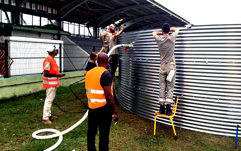 Dès la levée de la mesure de confinement imposée par le passage de l’ouragan Maria, nos équipiers basés à Saint-Martin ont repris leurs missions. Installation de réservoirs d’eau, distributions, évaluations des besoins.
