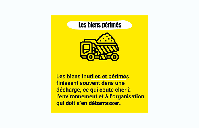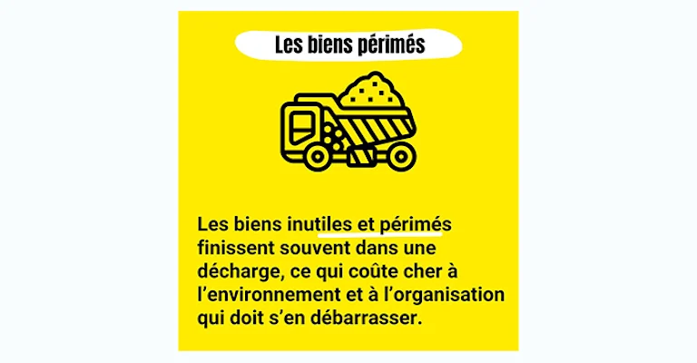 Les biens inutiles et périmés finissent souvent dans une décharge, ce qui coûte cher à l’environnement et à l’organisation qui doit s’en débarrasser.