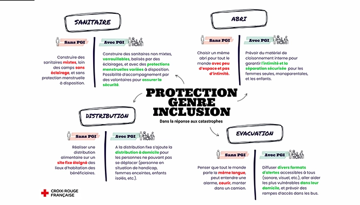 C’est pourquoi la Croix-Rouge française intègre l’approche « Protection, Genre et Inclusion » (PGI) dans l’ensemble de ses actions.