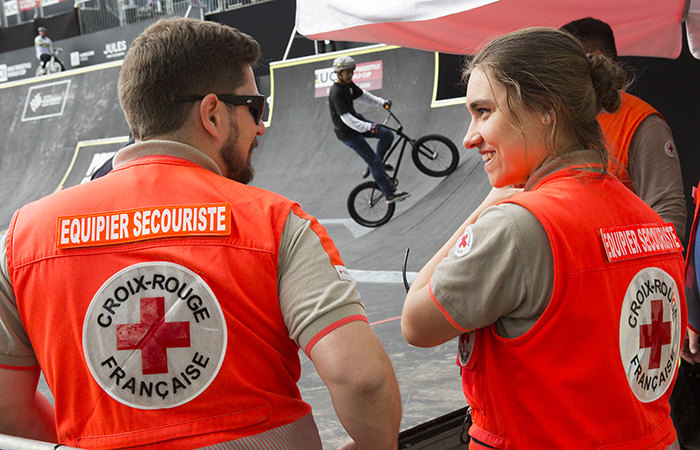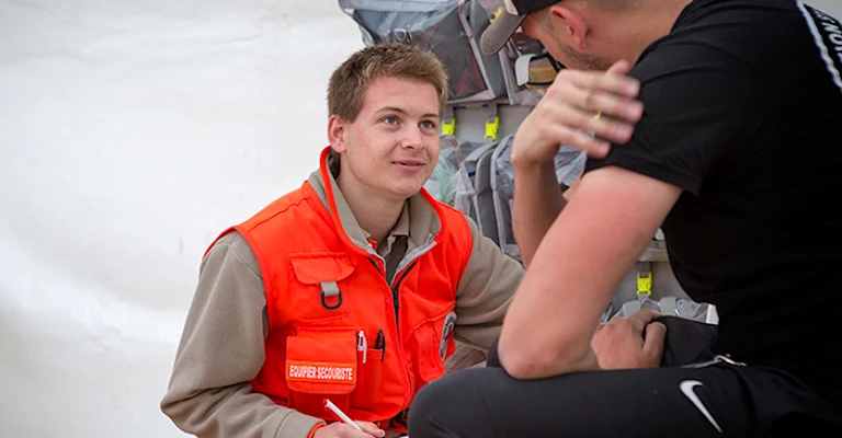 Le regard en coin, Tiphaine sourit. Ce jeune prof de droit se souvient sans peine des émotions qui l’ont traversé lors de son premier FISE - l’année dernière, quelques jours à peine après sa formation d’équipier secouriste lui-aussi. L’appréhension, oui. Les premières heures le laissant scotché tant le dispositif lui semblait complexe. Et puis, très vite, l’adrénaline terrain qui monte, et se fait tellement forte que, plutôt que de rester en poste quelques heures comme prévu, on reste filer un coup de main sans parvenir à partir ! Celui qui a, depuis, pris des responsabilités à la délégation territoriale, le sait désormais : « Oui, le FISE c’est impressionnant. Oui, l’organisation du DPS impose une préparation aux petits oignons. Mais c’est justement pour ça que c’est un terrain d’apprentissage fantastique, où chacun a sa place, son importance, quel que soit son rôle. »