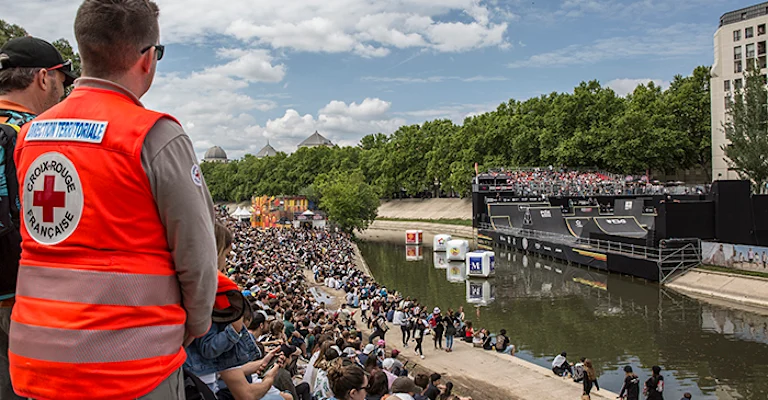 Sonneries de téléphone, appels radios en continu, et écrans d’ordinateur sur lesquels s’affichent géolocalisation des secouristes mobilisés, plannings des présents, et retransmission des exploits des sportifs … Le PC central bourdonne. Assurer tout à la fois la sécurité du public et celle des riders impose une vigilance de tous les instants. « On n’est jamais sereins. Et tant mieux en un sens - un imprévu est toujours possible. On s’y prépare d’ailleurs depuis janvier, confie Sara. L’équipe est ceci dit rodée - ses dix années de travail avec organisateurs du FISE et autres paie. « C’est que la sécurité d’un tel événement ne s’impose pas, elle se co-construit, avec tous. Aujourd’hui, la confiance est mutuelle », souligne la jeune femme.