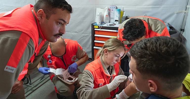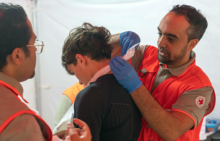 Une vingtaine de secouristes sont sur le pont : le dispositif est prévu autour d’une équipe fixe, une autre positionnée sur la piste de course, des binômes, une équipe d’évacuation ainsi que des infirmiers protocolés. Stéphane, un habitué de l’événement, revient chaque année y trouver « tout ce qu’on cherche en tant que secouriste : de l’action ! ». Autrement dit sur le dispositif : pas de place pour l’ennui.