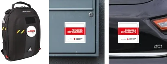 Les Premiers Répondants portent un sac marqué du logo “Premiers Répondants” et peuvent afficher un autocollant sur leur boîte aux lettres, leur ordinateur ou leur véhicule pour signaler leur rôle.