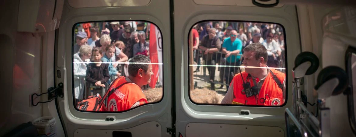 Vincent : Cela fait deux ou trois ans que je suis bénévole, mais c’est la première fois que je suis sur un poste de secours. J’ai passé ma formation PSE en mars, il n’y a pas si longtemps. La formation est en deux phases : après la phase en distanciel d’une vingtaine d’heures, j’ai passé la phase en présentiel avec des formateurs et des formatrices. J’y ai appris à mettre en pratique la théorie : faire un bilan, prendre le pouls, repérer des signes de détresse, essayer de faire un premier bilan, etc.